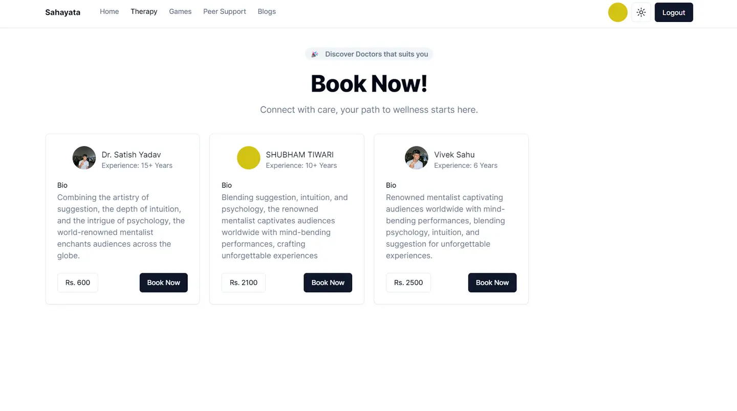 Sahayata is a mental wellness app that provides accessible, anonymous support through professional consultations, mood tracking, and community forums. It offers a comprehensive, user-friendly platform for managing mental health and promoting holistic well-being.